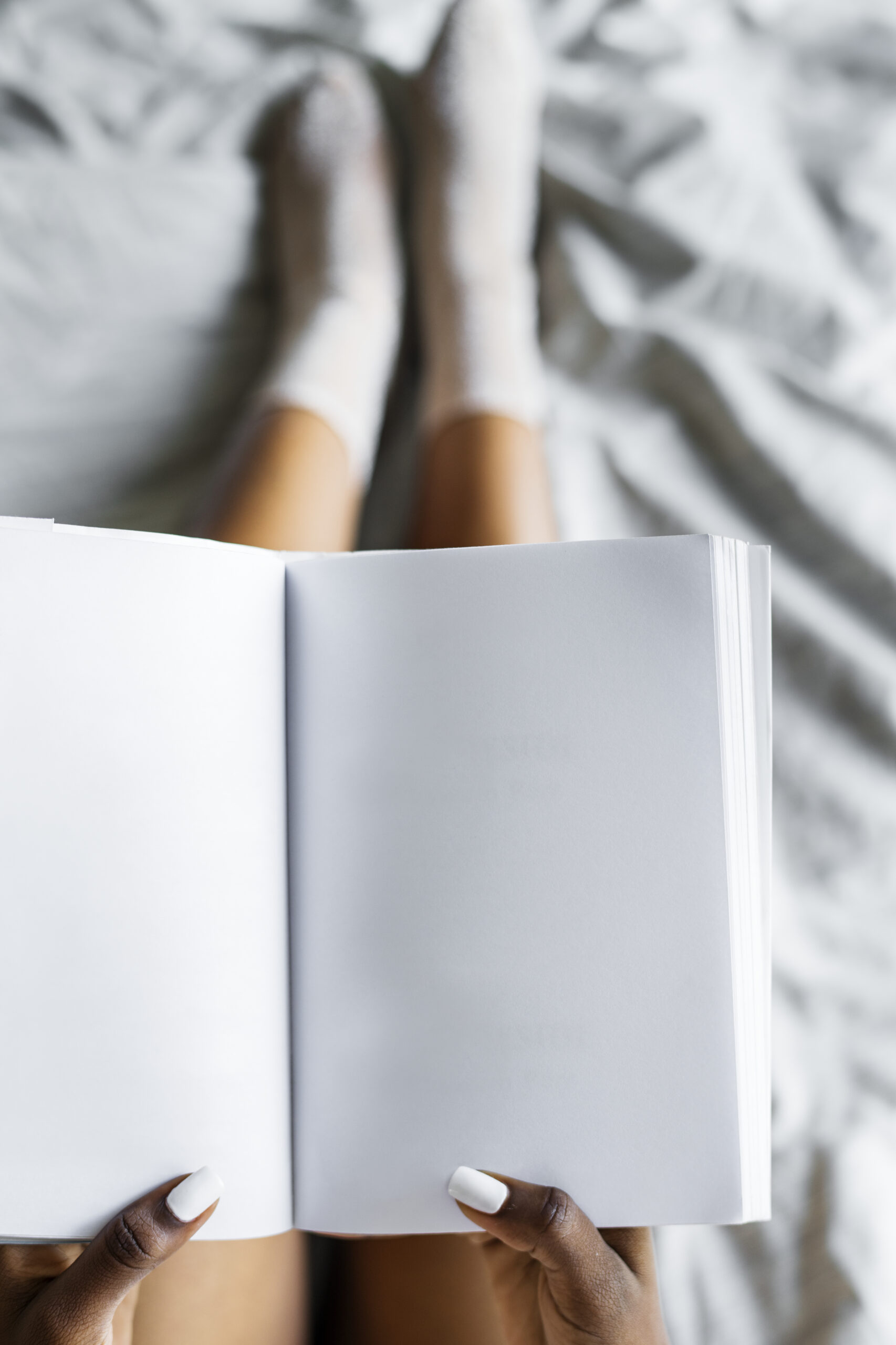 Aerial view of woman holding blank diary